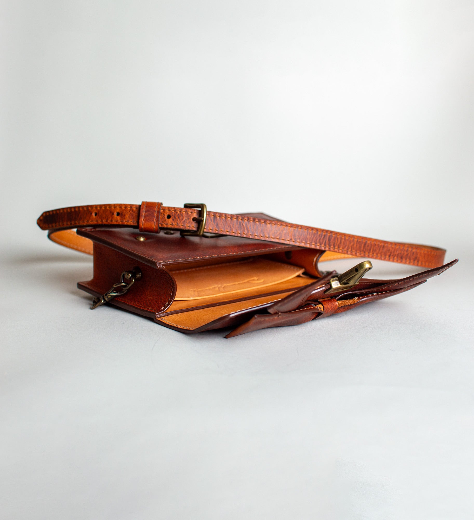 - Detachable brass and leather shoulder strap